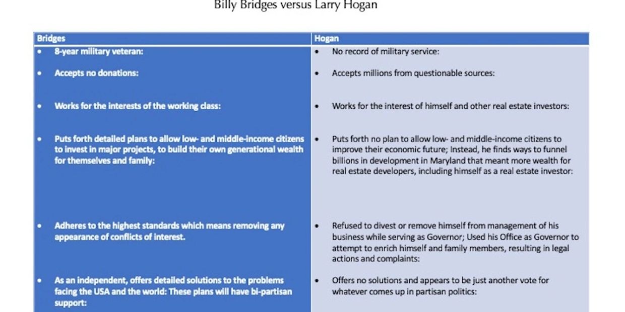 Compare and contrast these two very different men and determine which meets your vision of Maryland, the USA, and the world.